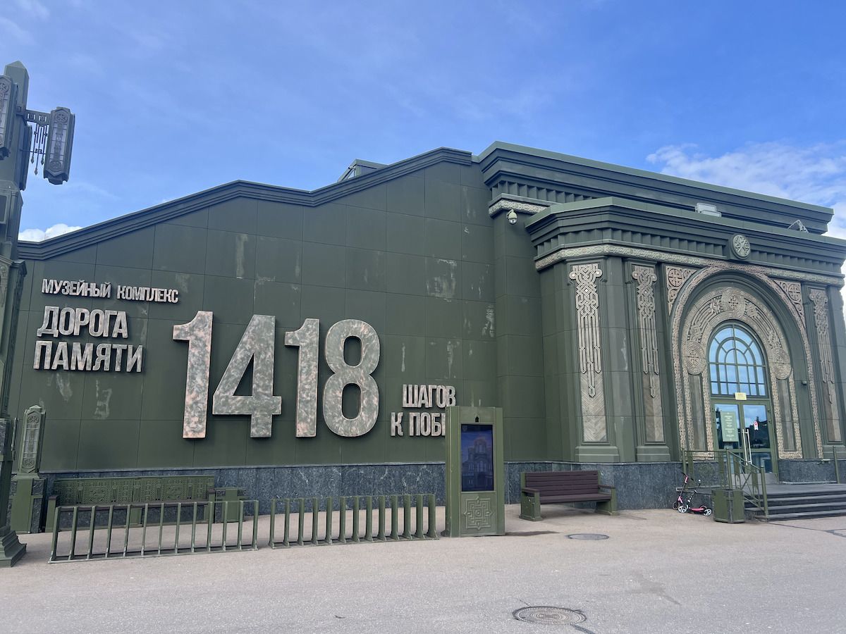 Выйдя из храма, направляюсь в огромный, раскинувшийся по периметру вокруг него, музейный комплекс. Он назван «Дорогой памяти». Трактом длиной в 1418 шагов по количеству суток, что длилась Великая Отечественная война. Глубокая скорбь нашего народа, наша память, гордость за наших предков, дедов и прадедов, наших бабушек и прабабушек, сдюживших, перенесших все беды на свете, и сломавших в конце концов хребет фашизму.