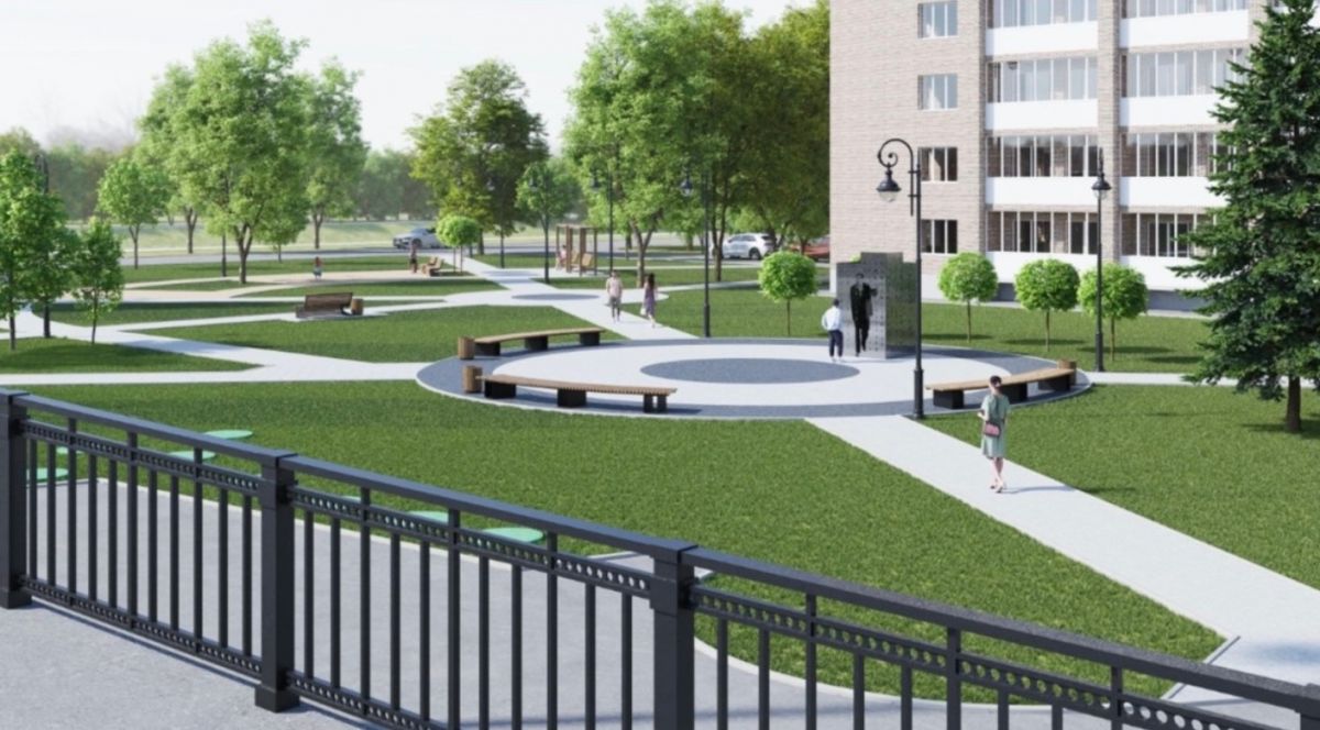 По проекту здесь сделают удобные пешеходные дорожки, поставят новые скамейки и урны, оборудуют детскую игровую площадку. Особое внимание уделят озеленению, освещению и системе видеонаблюдения. Центральным элементом станет скульптура Альберта Иванова.