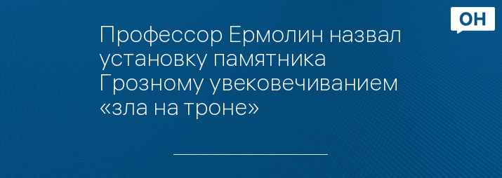 Главный редактор журнала «Континент» (e-continent), профессор Евгений Ермолин прокомментировал инициативу по установке в Орле первого в России памятника Ивану Грозному. По его словам, если эта инициатива будет реализована, в городе будет увековечено «зло на троне».