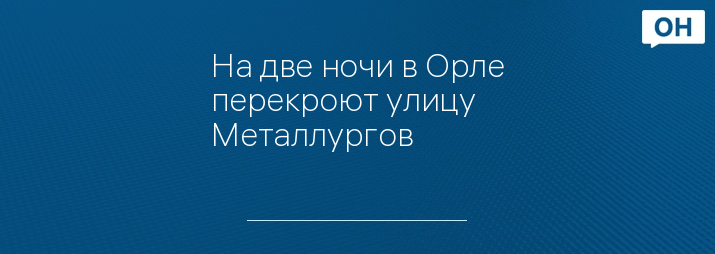 На две ночи в Орле перекроют улицу Металлургов, сообщает администрация города.