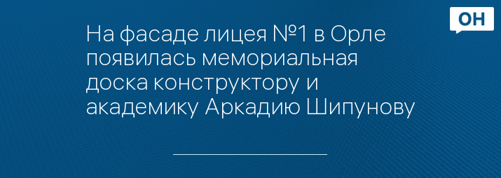 На фасаде лицея №1 в Орле появилась мемориальная доска конструктору и академику Аркадию Шипунову
