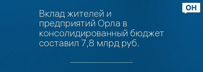 Вклад жителей и предприятий Орла в консолидированный бюджет составил 7,8 млрд руб.