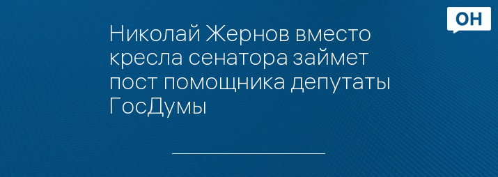 Николай Жернов вместо кресла сенатора займет пост помощника депутаты ГосДумы