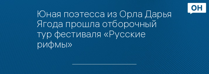 Юная поэтесса из Орла Дарья Ягода прошла отборочный тур фестиваля «Русские рифмы»