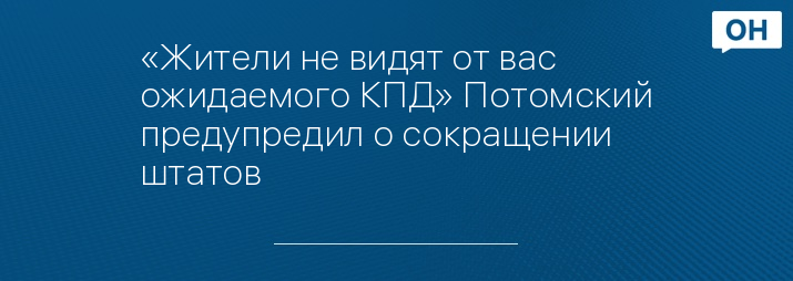 «Жители не видят от вас ожидаемого КПД» Потомский предупредил о сокращении штатов