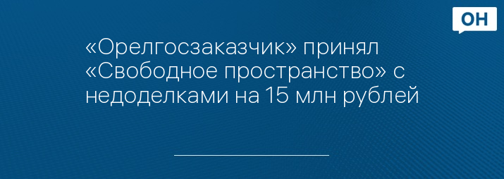 «Орелгосзаказчик» принял «Свободное пространство» с недоделками на 15 млн рублей