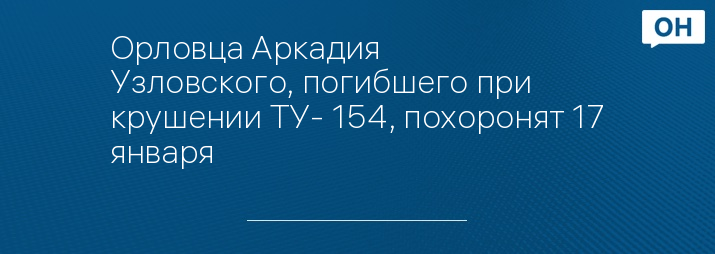 Орловца Аркадия Узловского, погибшего при крушении ТУ- 154, похоронят 17 января