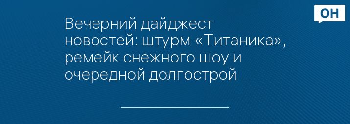Вечерний дайджест новостей: штурм «Титаника», ремейк снежного шоу и очередной долгострой
