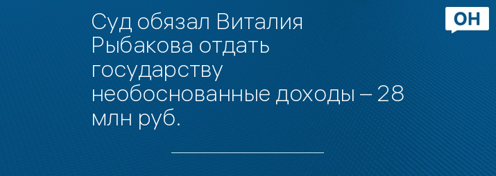 Суд обязал Виталия Рыбакова отдать государству необоснованные доходы – 28 млн руб.