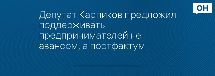Депутат Карпиков предложил поддерживать предпринимателей не авансом, а постфактум