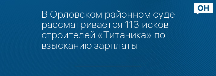 В Орловском районном суде рассматривается 113 исков строителей «Титаника» по взысканию зарплаты