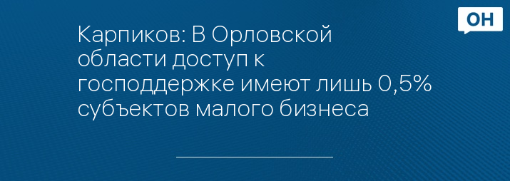 Карпиков: В Орловской области доступ к господдержке имеют лишь 0,5% субъектов малого бизнеса
