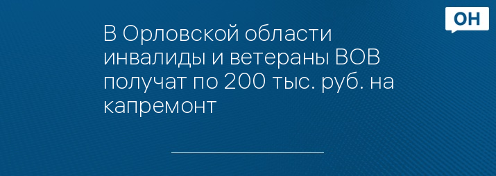 В Орловской области инвалиды и ветераны ВОВ получат по 200 тыс. руб. на капремонт