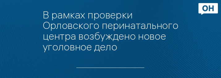В рамках проверки Орловского перинатального центра возбуждено новое уголовное дело