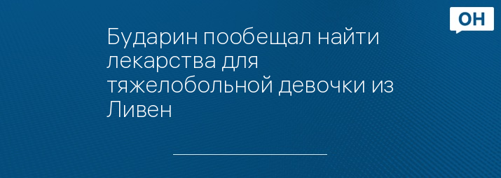 Бударин пообещал найти лекарства для тяжелобольной девочки из Ливен