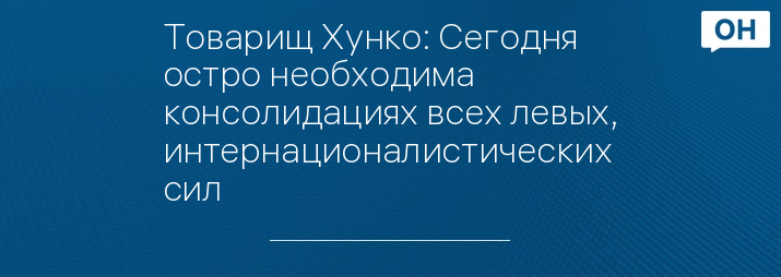 Товарищ Хунко: Сегодня остро необходима консолидациях всех левых, интернационалистических сил