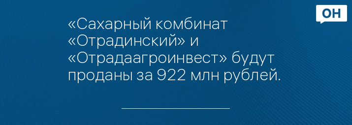 «Сахарный комбинат «Отрадинский» и «Отрадаагроинвест» будут проданы за 922 млн рублей.
