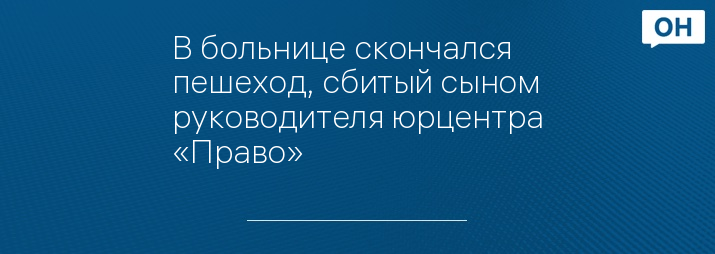 В больнице скончался пешеход, сбитый сыном руководителя юрцентра «Право»