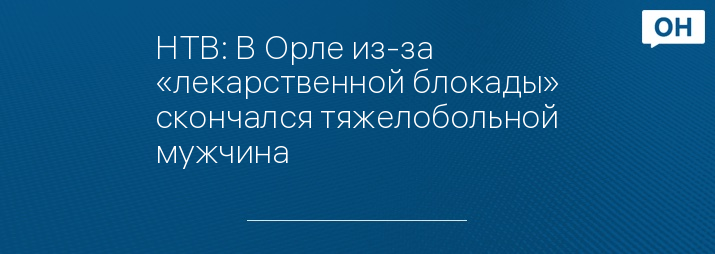 НТВ: В Орле из-за «лекарственной блокады» скончался тяжелобольной мужчина