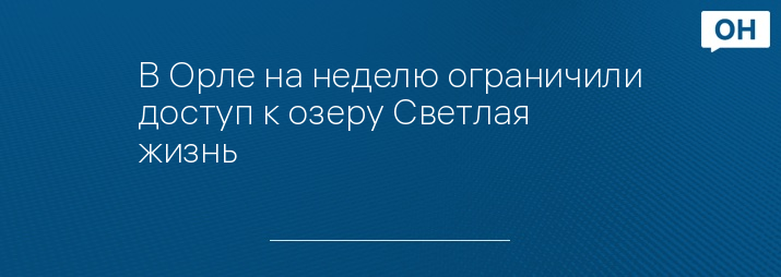В Орле на неделю ограничили доступ к озеру Светлая жизнь