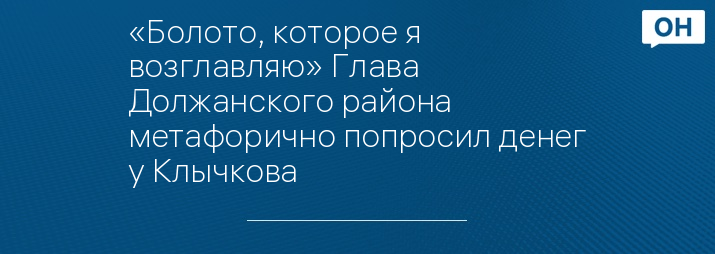 «Болото, которое я возглавляю» Глава Должанского района метафорично попросил денег у Клычкова