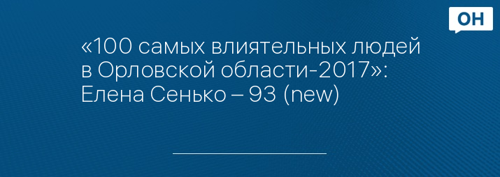 93-е место в рейтинге «100 самых влиятельных людей в Орловской области» в 2017 году занимает председатель Общественной палаты Орловской области Елена СЕНЬКО: