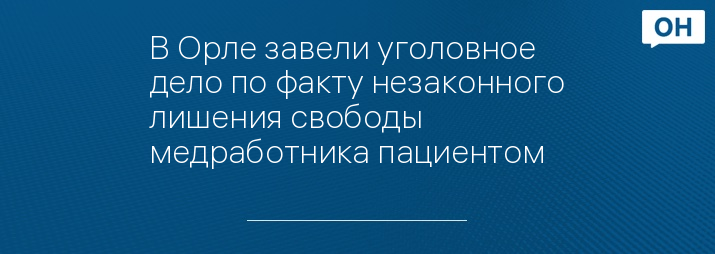 В Орле завели уголовное дело по факту незаконного лишения свободы медработника пациентом