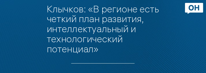 Клычков: «В регионе есть четкий план развития, интеллектуальный и технологический потенциал»