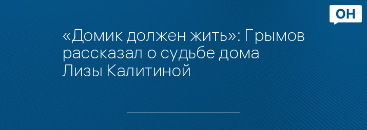 «Домик должен жить»: Грымов рассказал о судьбе дома Лизы Калитиной