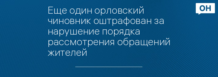 Еще один орловский чиновник оштрафован за нарушение порядка рассмотрения обращений жителей