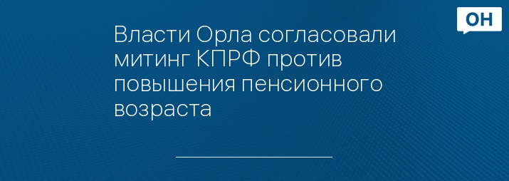 Общеобластной митинг против повышения пенсионного возраста согласован, сообщили в орловском обкоме КПРФ.