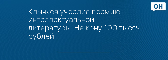 Клычков учредил премию интеллектуальной литературы. На кону 100 тысяч рублей