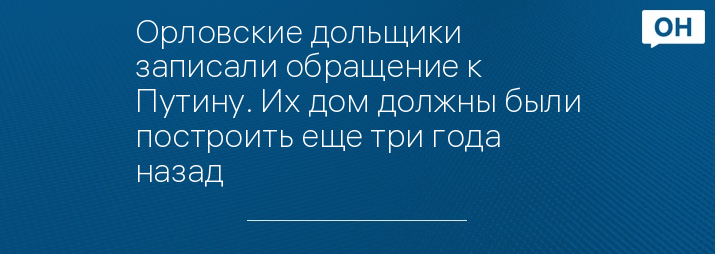 Орловские дольщики записали обращение к Путину. Их дом должны были построить еще три года назад
