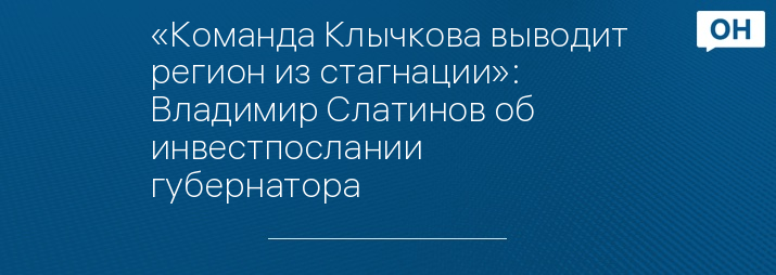 «Команда Клычкова выводит регион из стагнации»: Владимир Слатинов об инвестпослании губернатора