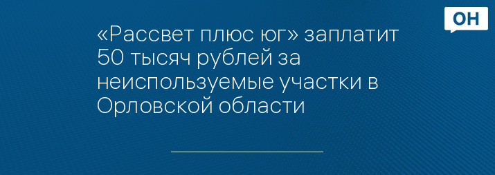 «Рассвет плюс юг» заплатит 50 тысяч рублей за неиспользуемые участки в Орловской области