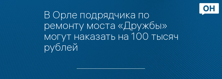 В Орле подрядчика по ремонту моста «Дружбы» могут наказать на 100 тысяч рублей