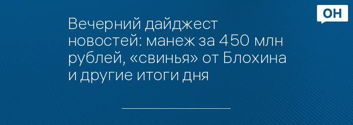 Вечерний дайджест новостей: манеж за 450 млн рублей, «свинья» от Блохина и другие итоги дня