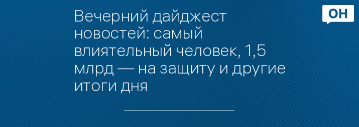 Вечерний дайджест новостей: самый влиятельный человек, 1,5 млрд — на защиту и другие итоги дня