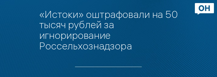 «Истоки» оштрафовали на 50 тысяч рублей за игнорирование Россельхознадзора