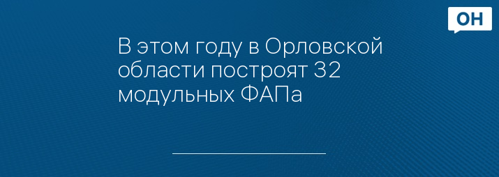 В 2019 году в рамках нацпроектов 6 современных передвижных медицинских комплексов были переданы учреждениям здравоохранения, 27 автомобилей скорой помощи пополнили парк орловских медицинских учреждений. В сентябре открыли ФАП с жильем для персонала в Шаблыкинском районе, в декабре – модульный фельдшерско-акушерский пункт в Знаменском районе.