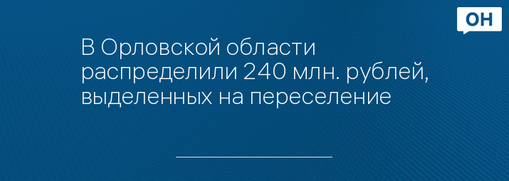 В Орловской области распределили 240 млн. рублей, выделенных на переселение