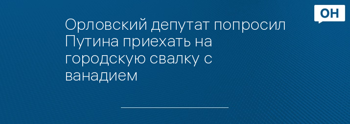 Орловский депутат попросил Путина приехать на городскую свалку с ванадием