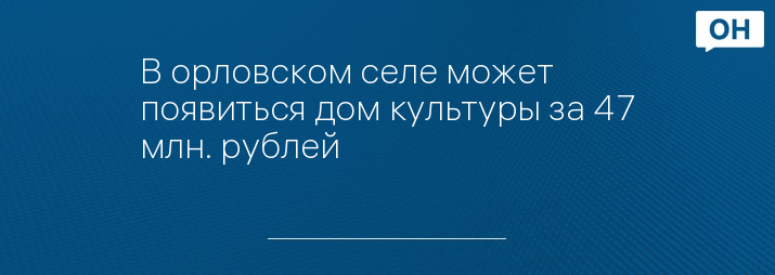 В орловском селе может появиться дом культуры за 47 млн. рублей
