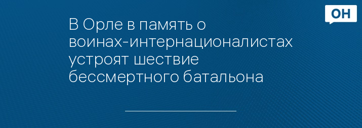 15 февраля в 10 часов от стелы «Орел – город воинской славы» начнется шествие бессмертного батальона. Участники акции понесут портреты погибших воинов-интернационалистов к памятнику участникам локальных войн и военных конфликтов на Наугорском шоссе.