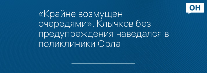 «Крайне возмущен очередями». Клычков без предупреждения наведался в поликлиники Орла