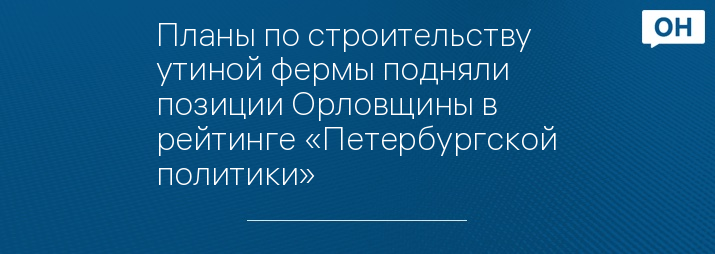 Планы по строительству утиной фермы подняли позиции Орловщины в рейтинге «Петербургской политики»