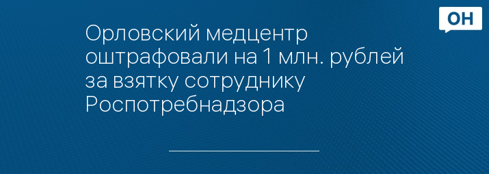 Орловский медцентр оштрафовали на 1 млн. рублей за взятку сотруднику Роспотребнадзора