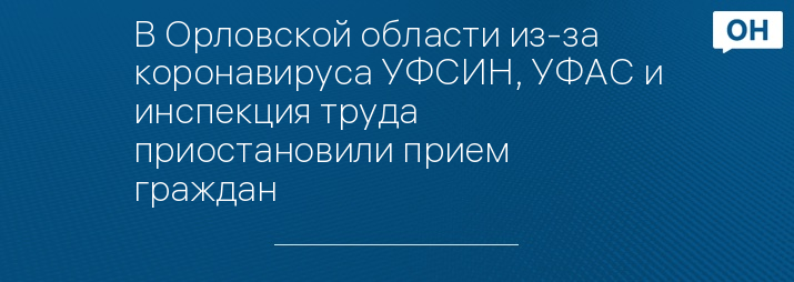 Несколько орловских ведомств приняли решение приостановить прием граждан. В их числе, государственная инспекция труда в Орловской области, УФСИН по Орловской области и УФАС по Орловской области.