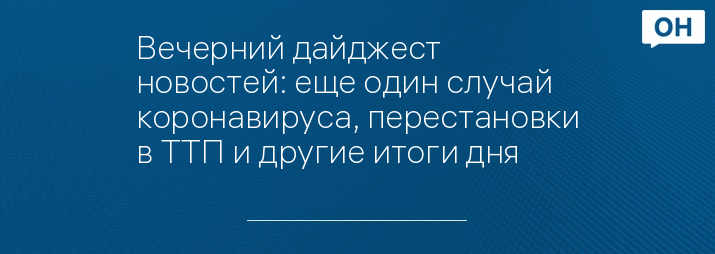 Вечерний дайджест новостей: еще один случай коронавируса, перестановки в ТТП и другие итоги дня