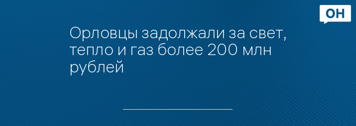 Орловцы задолжали за свет, тепло и газ более 200 млн рублей